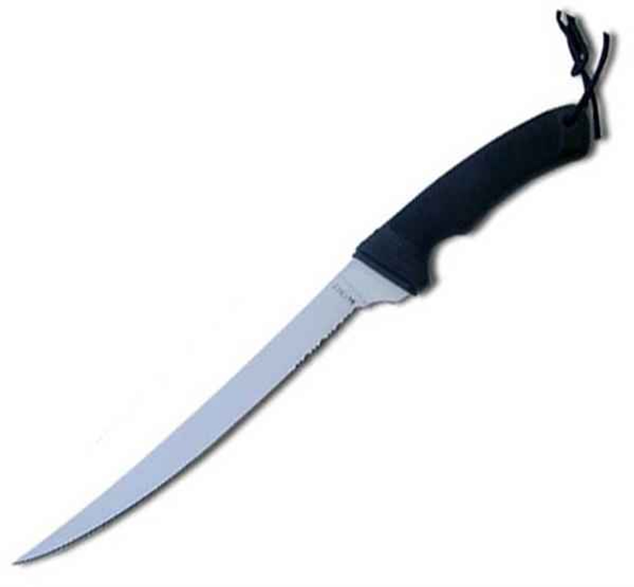 When you pick up a Big Eddy fillet knife, you’ll immediately feel its balance and comfort. The unique Twin-FusedTM handle is a rigid, high-impact polypropylene core wrapped with a soft, comfortable checkered grip for a firm, safe hold. On the business end, Big Eddy features a Razor-Sharp blade with perfectly placed mid-point flex and optional Triple PointTM Serrations to help you handle the toughest cutting chores. Its streamlined sheath is injection molded for tough wear and style, and the polypropylene lanyard adds extra convenience. Big Eddy builds in all the quality of the world’s finest filleting knives at a remarkably fair price.
