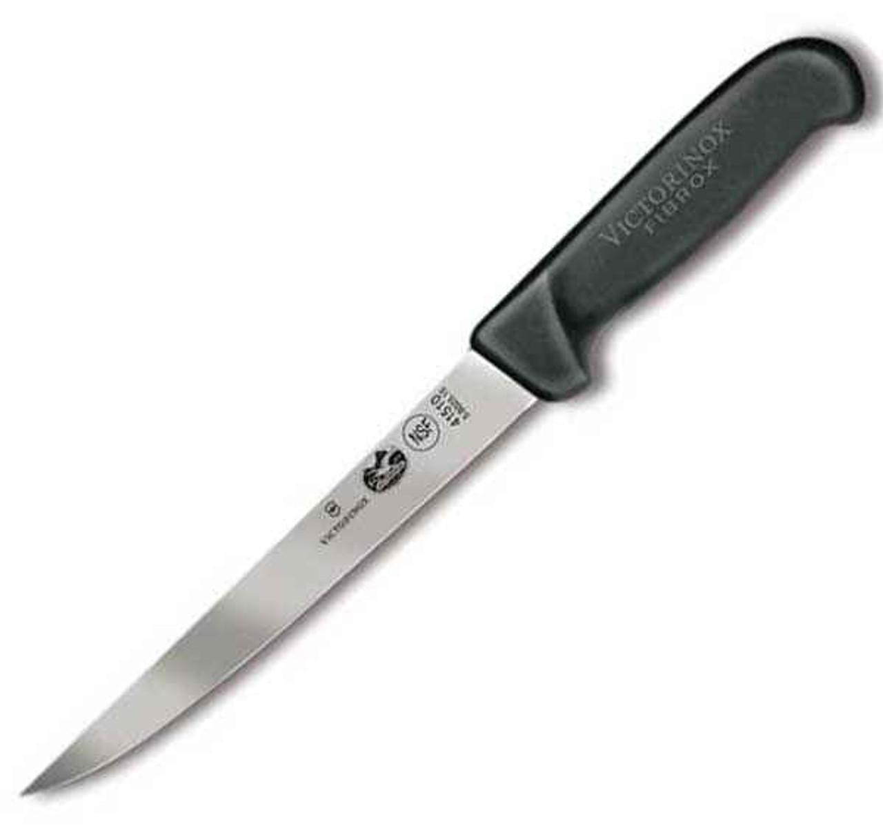 Forschner 7″ Boning Straight, Extra Wide, Stiff Blade, Black Fibrox Handle