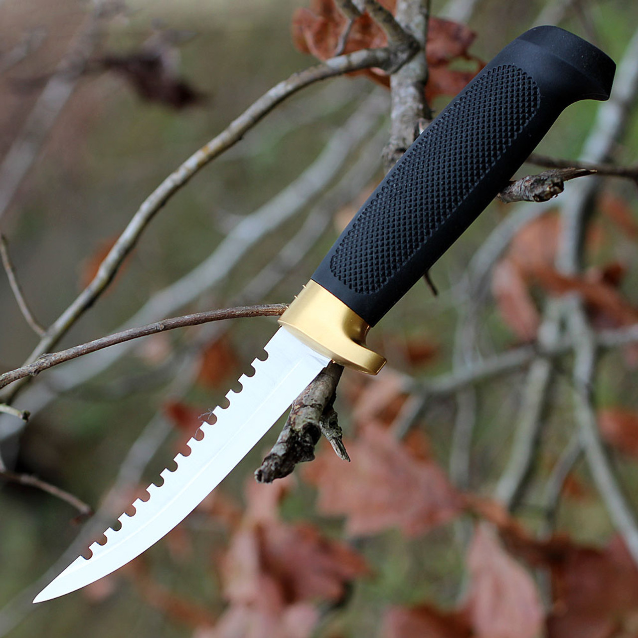 The blade of the fisherman’s knife is sharpened just like a normal Marttiini knife, therefore you can use this knife not only for processing fish but also for many jobs around the house or camp. The textured rubber handle and the finger guard ensure a firm grip of the knife even in cold and wet conditions.