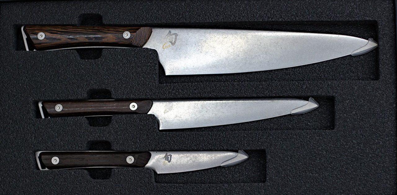 The Shun Kanso 3-Piece Starter Set includes three of the most vital pieces of kitchen cutlery. The set is built around the Shun Kanso 8-in. Chef’s Knife, the one knife you’re sure to use every time you cook. On the other end of the scale is the Shun Kanso Paring Knife, ideal for all those trimming and peeling tasks. This beautiful set also includes the Shun Kanso 6-in. Utility Knife—perfect for in-between-sized tasks. This attractive set comes in a tasteful box suitable for storage or gift-giving.